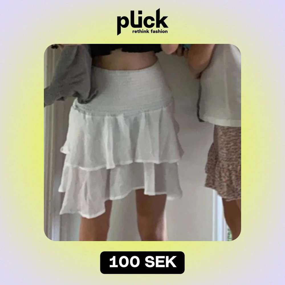 Säljer denna vita kjol med volanger ifrån SHEIN, storlek xs.