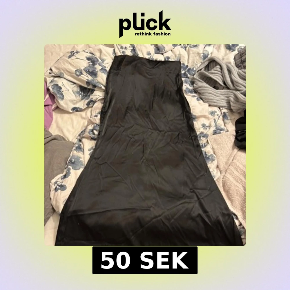Snygg svart långkjol i glansigt satinliknande material med en elegant spetskant upptill. Kjolen har en rak och stilren passform som ger en classy vibe. Perfekt för dig som gillar en enkel men ändå chic look.
