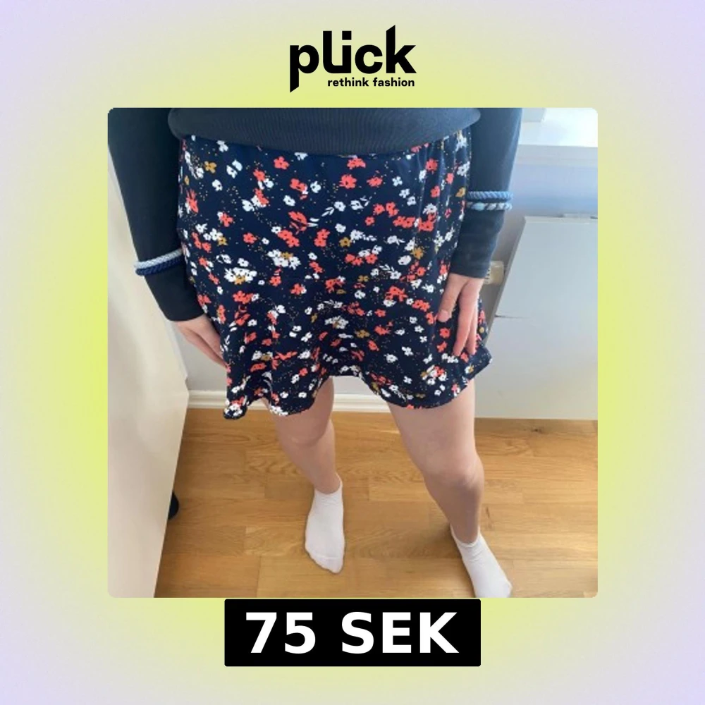 Säljer en söt blommig kortkjol från WE Fashion. Kjolen har ett färgglatt mönster med blommor i rött, vitt och blått på en mörkblå bakgrund. Perfekt för en somrig look! 🌸 Den har också inbyggda byxor så du kan röra dig fritt❤️
