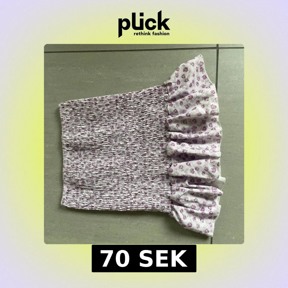 Säljer en söt kjol i vitt med lila blommönster och volangdetalj. Kjole är smockad för en tight passform och har en romantisk känsla. Perfekt för sommardagar!