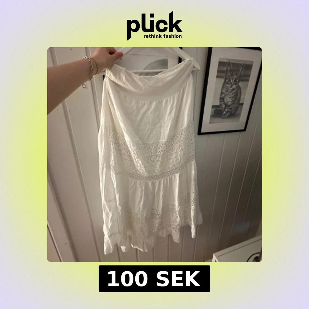 Superfin vit långkjol med breda spetsinslag och volanger. Kjolen har en flowy passform och är tillverkad i ett lätt bomullstyg, perfekt för varma dagar. Den har en romantisk vibe med sina broderade spetsband och mjuka lager.