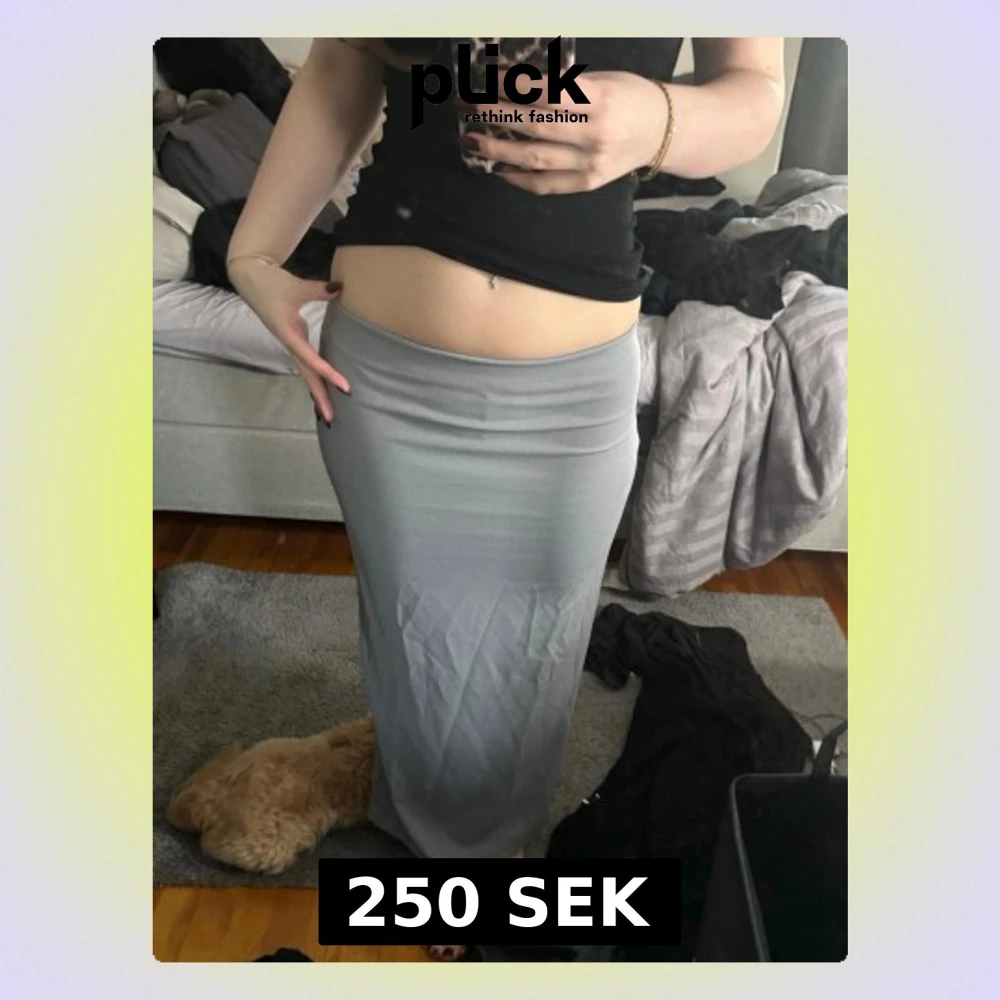 Säljer en stilren ljusgrå långkjol med slits bak. Kjolen har en enkel, rak passform och är gjord i ett mjukt och stretchigt material som sitter snyggt på kroppen❤️