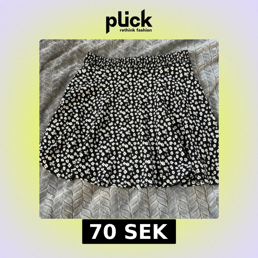 Supersöt svart kortkjol från 157 med vita småblommor över hela tyget. Kjolen har resår i midjan för en bekväm passform och är perfekt för dig som gillar en feminin och lekfull stil.