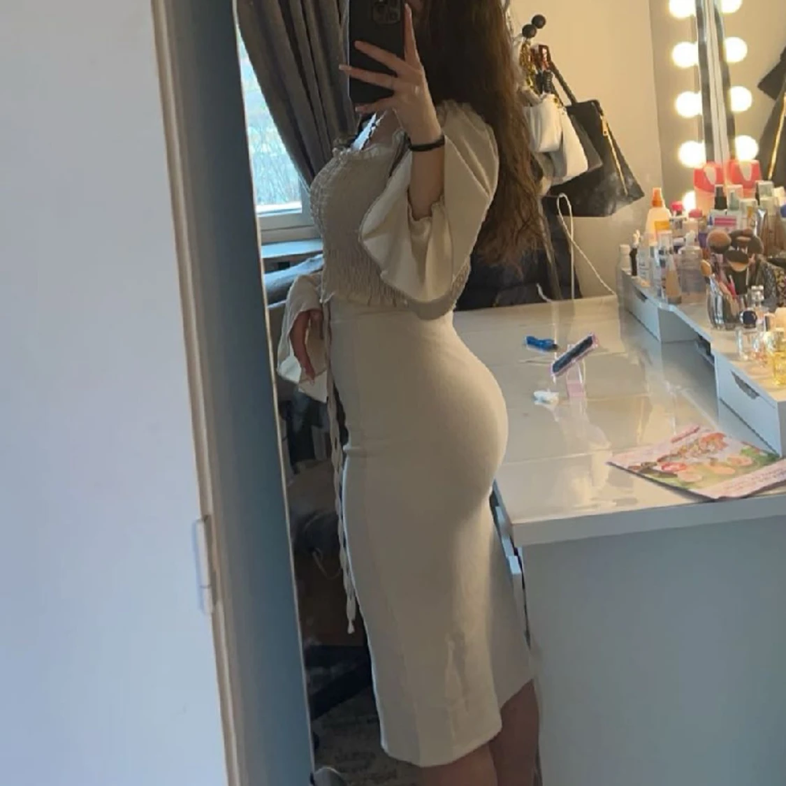 Beige kjol som går ner till vaderna på mig som är 1.60 cm. Sitter som en smäck!!