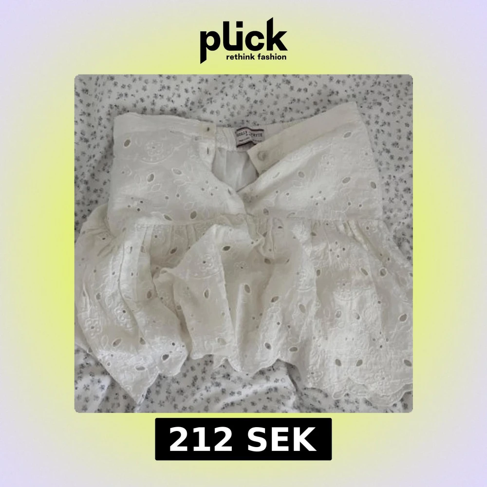 Säljer en vit kjol med vita broderade blommdetaljer. Kjolen är i storlek XS och är från Holly & Whyte💗Den är knappt använd