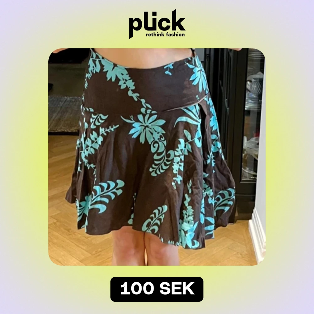 Jättesöt brun y2k kjol med blåa blommor, storlek S-M!❤️