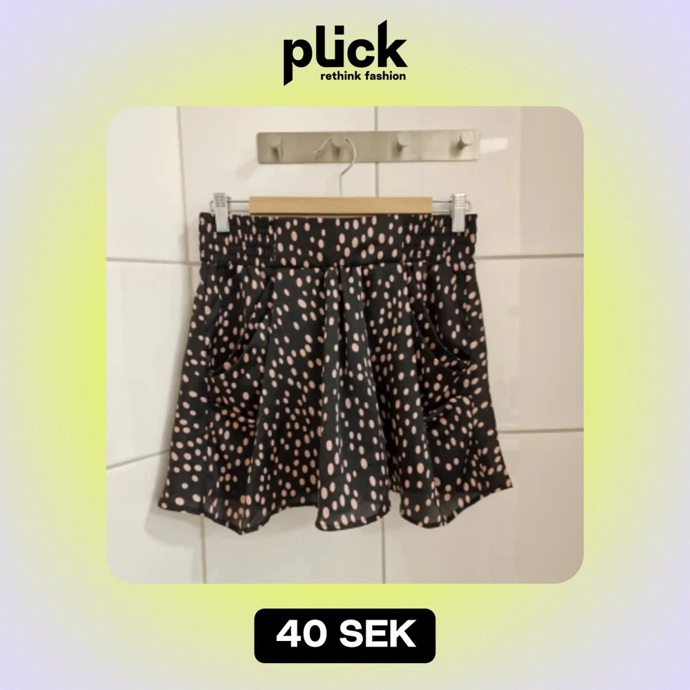Kjol Strl M Nyskick! Färg: Svart, Ljusrosa Twenty One Kort vippig kjol i Y2K-stil. Prickigt mönster. Resår bak i midjan, fickor i sidorna. Sparsamt använd. Märkt strl L, men är liten i storleken.