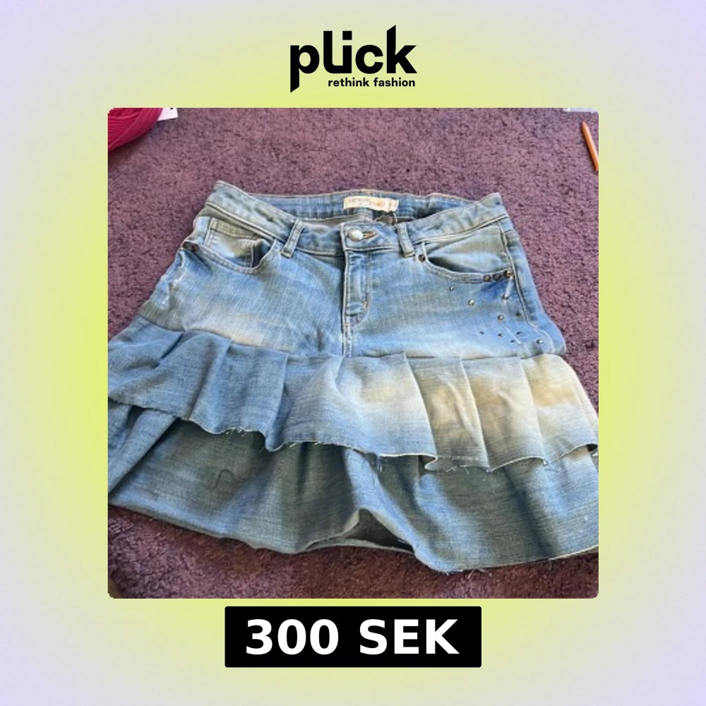 Sytt själv en jeanskjol i storlek 170 och den har snygga nitar på, 2 volanger😍