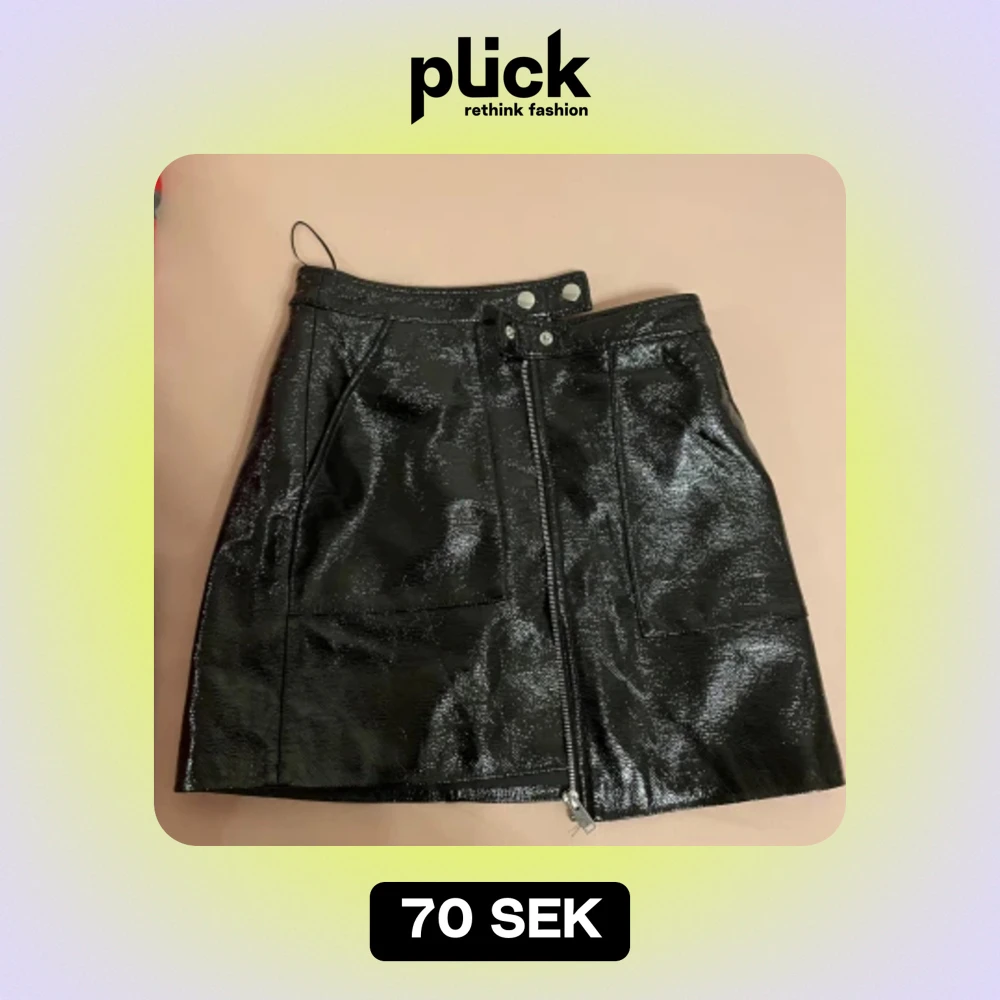 En svart kjol från Mango i storlek S. Kjolen har en glansig yta och är utrustad med en dragkedja framtill samt två knappar i midjan. Den har också två fickor framtill. Skriv gärna om ni har frågor 💕