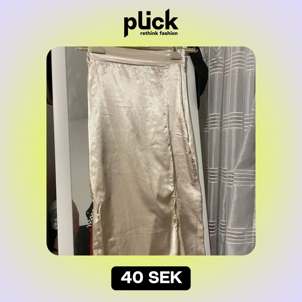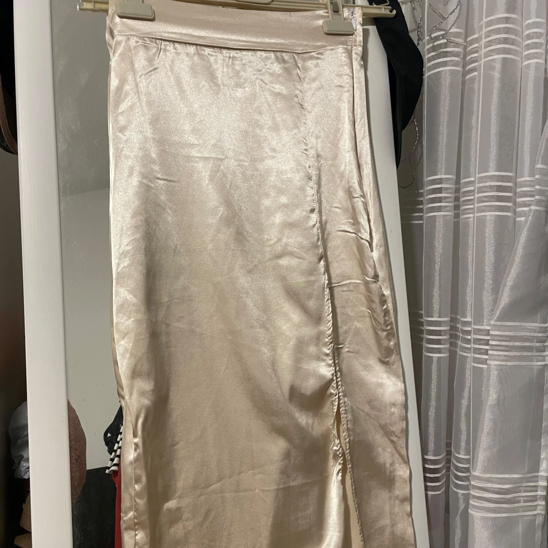 Superfin beige midikjol i siden. Kjolen har en slits på sidan. Använd en gång från Prettylittlething 💛