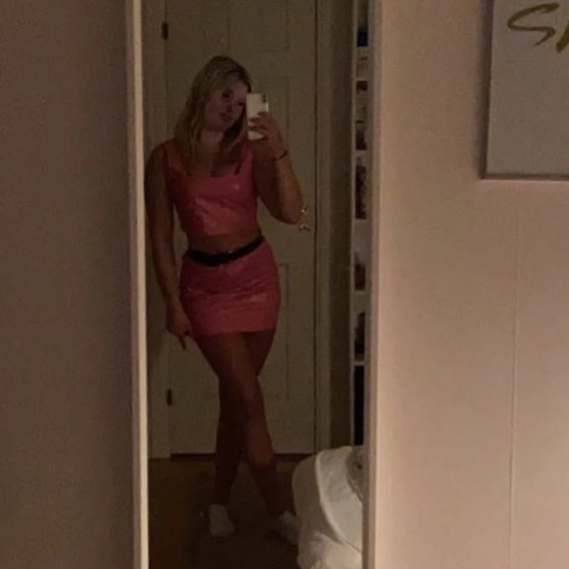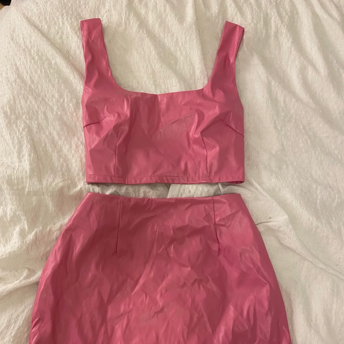 Ett jättegulligt rosa set i konstläder som bara har använts en gång. Passar mig som har storlek S-M. Från shein men helt slutsåld💘