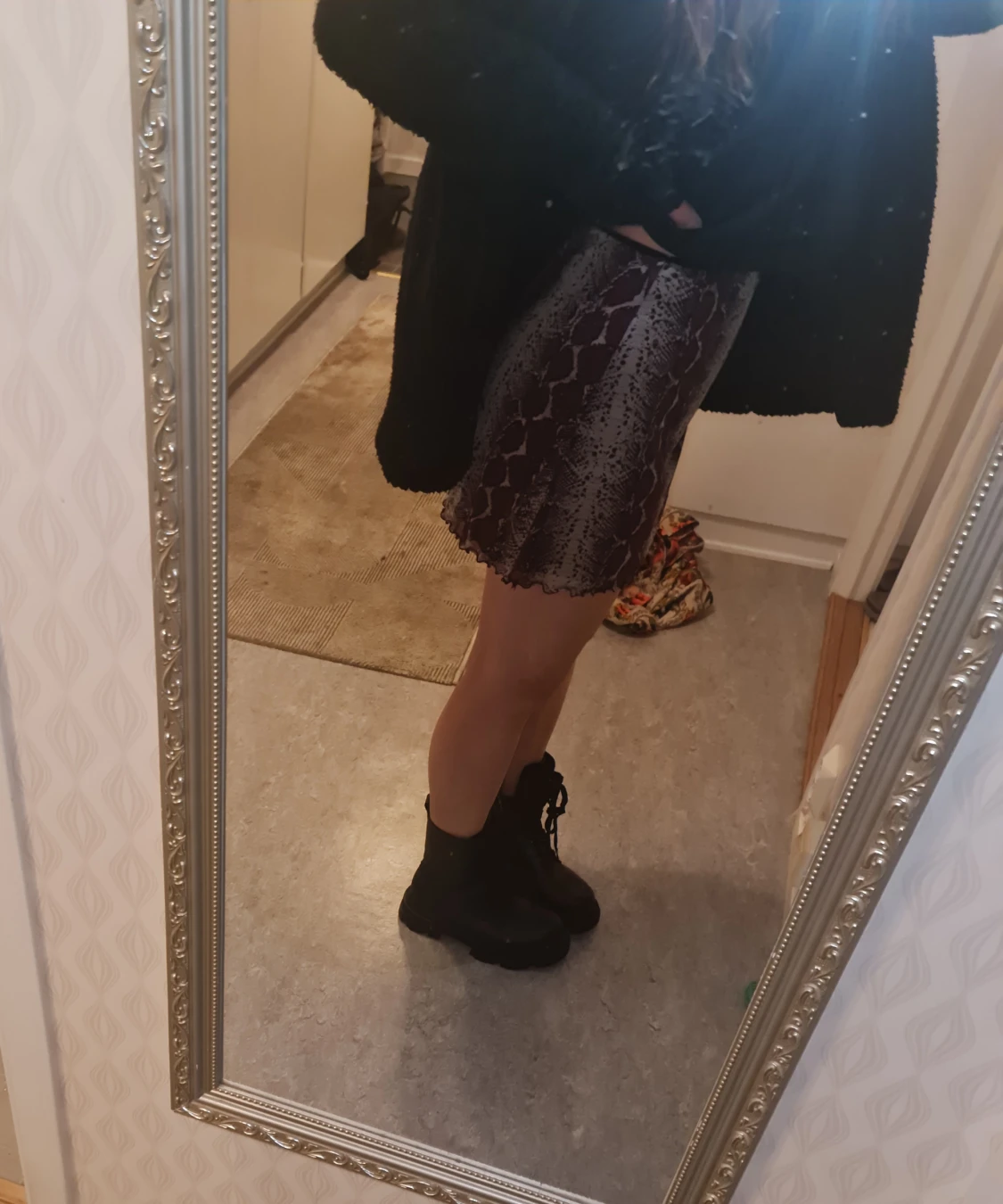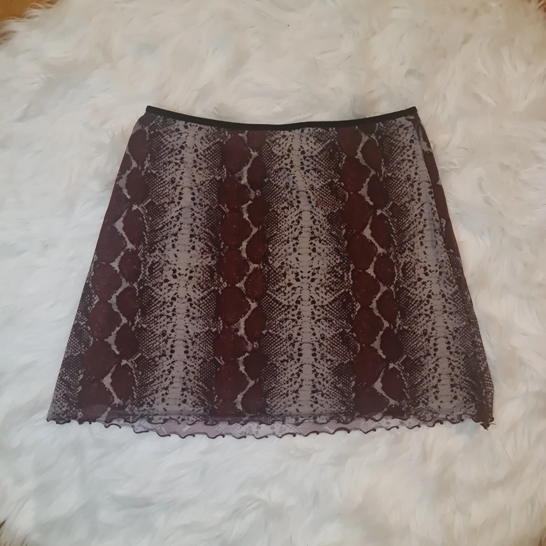 Kjol från urban outfitters i lila ormmönster. Oklart vilken storlek det är men skulle gissa på S/M. Stretchigt matereial