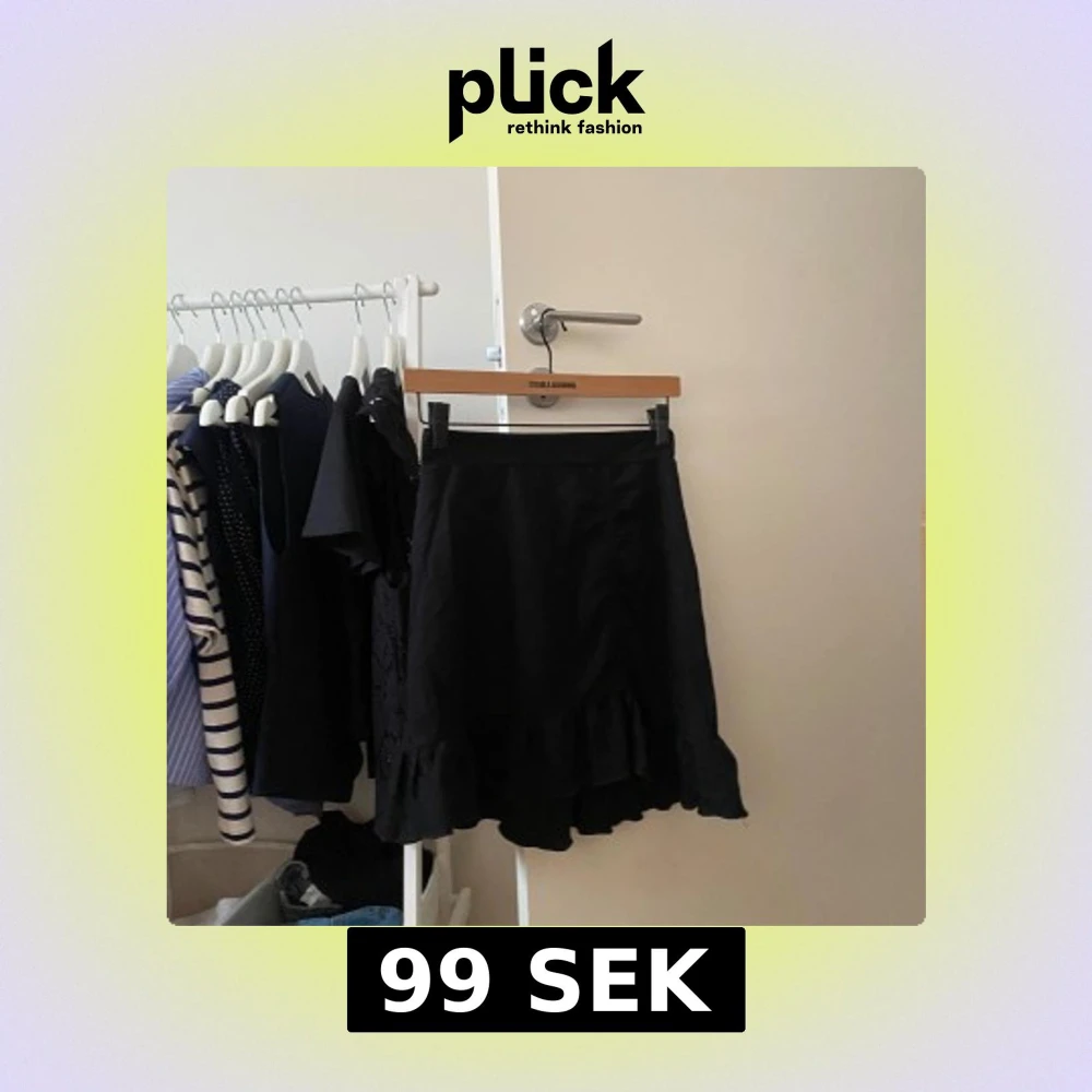 Supersnygg svart kjol från Gina Tricot med volangkant nertill. Kjolen är kort och har en lätt utsvängd form som ger en skön och trendig vibe. Perfekt att styla med en enkel topp eller stickad tröja.