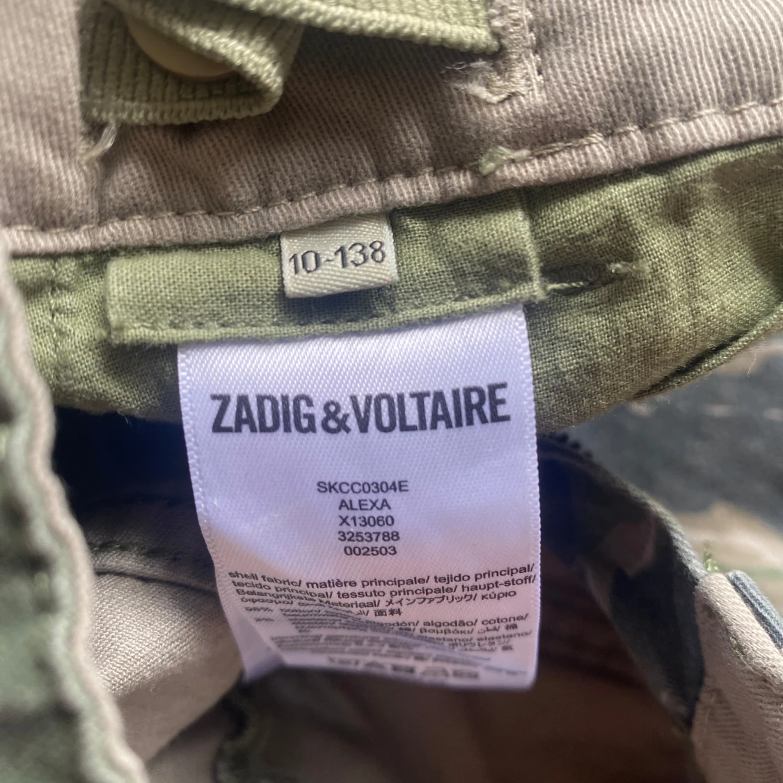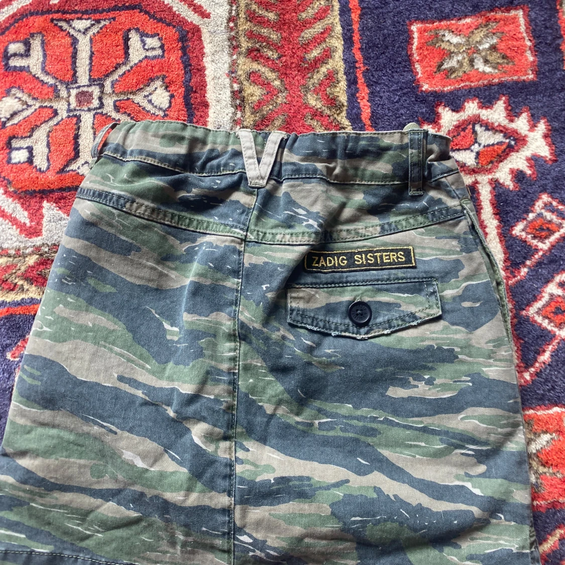 Cool kortkjol från Zadig & Voltaire i camouflage-mönster med gröna och beige toner. Kjolen har bälteshällor, knapp och dragkedja framtill samt bakficka med knapp och broderad Zadig Sisters-detalj.Aldrig använd