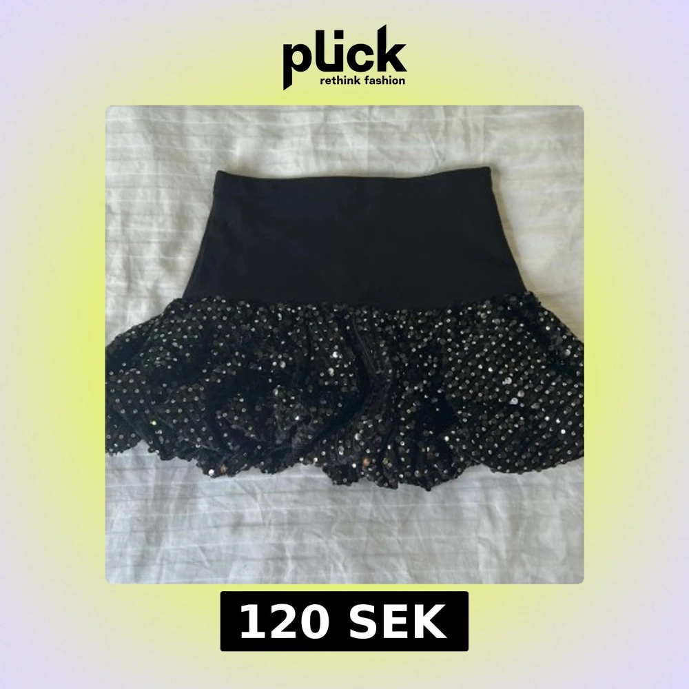 Supersnygg svart kortkjol från Zara med glittriga paljetter på volangdelen. Kjolen har en tight, stretchig midja och en festlig look som verkligen sticker ut. Jag är 155 cm så det passar om man är längre än 140cm🤗