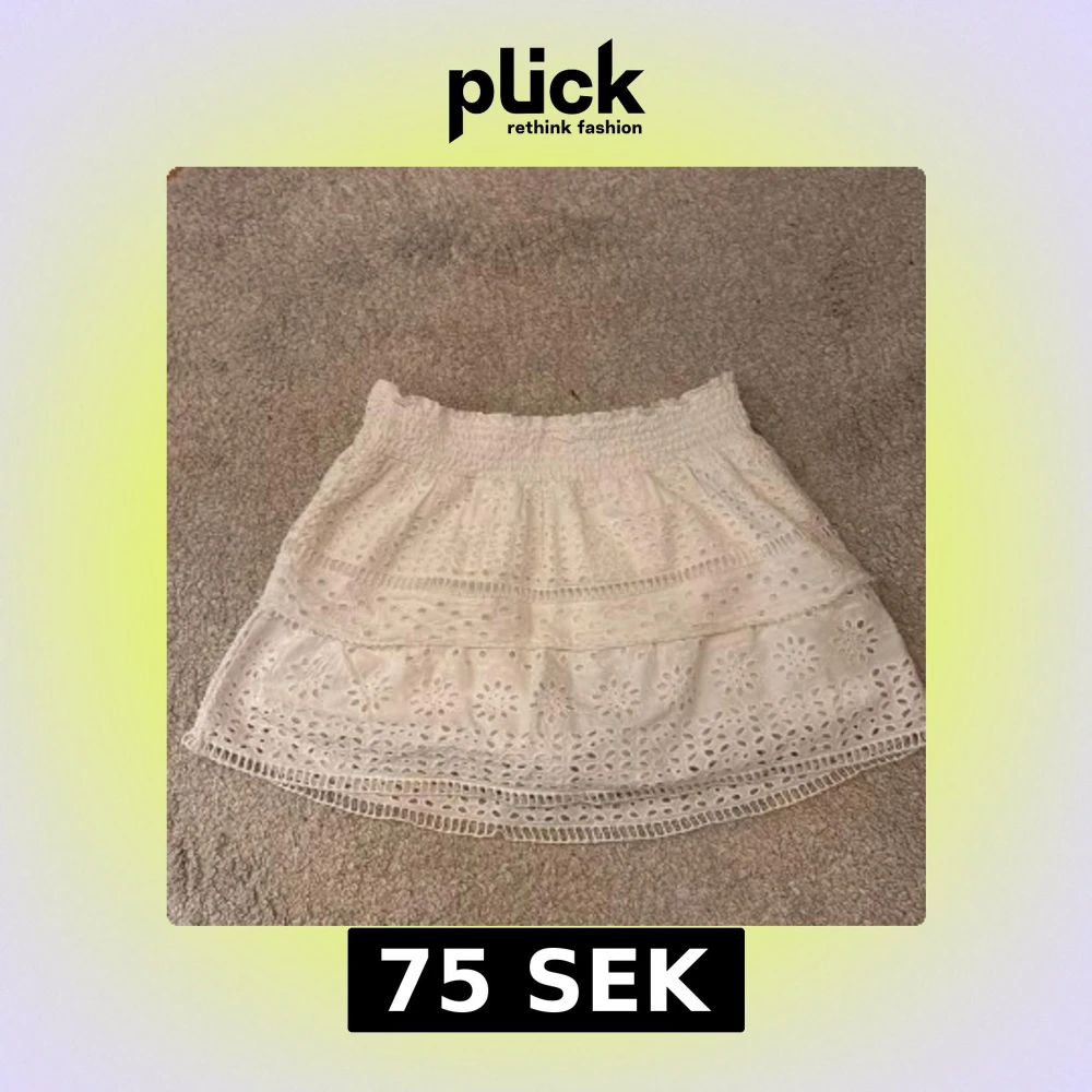 Supersöt vit kortkjol med broderade blommor och volangdetaljer. Kjolen har resår i midjan och är perfekt för en somrig look. Lätt och luftig med fina spetsinslag och broderade mönster.Kjolen har också shorts inuti kjolen som inte syns. Perfekt nu till sommaren!