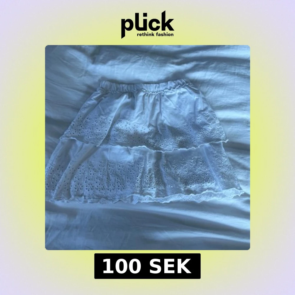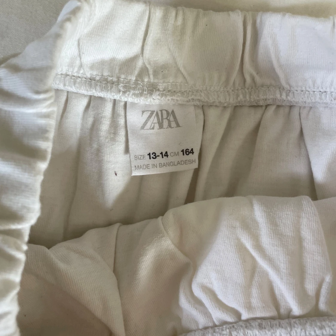 Säljer en söt vit kjol från Zara med broderade detaljer. Kjolen har en elastisk midja och två lager med volanger som ger en fin volym. Perfekt för varma dagar!