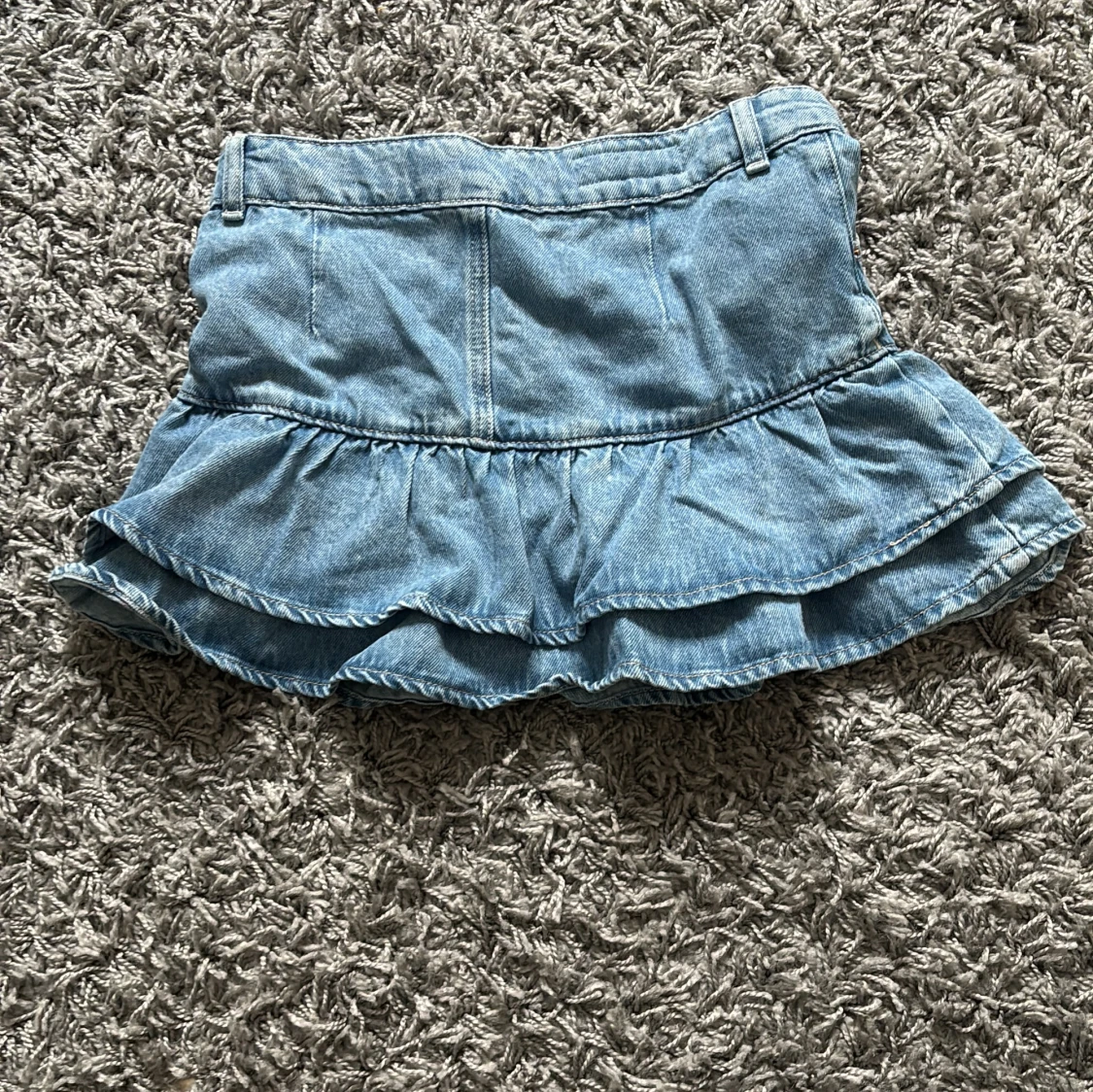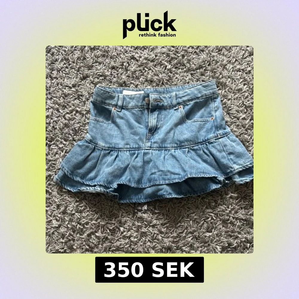 Supersöt blå jeanskjol med volangkant och klassiska fickor fram. Kjolen har en kort modell och är tillverkad i denim med bälteshällor och knappstängning. Perfekt för dig som gillar en trendig och avslappnad stil.