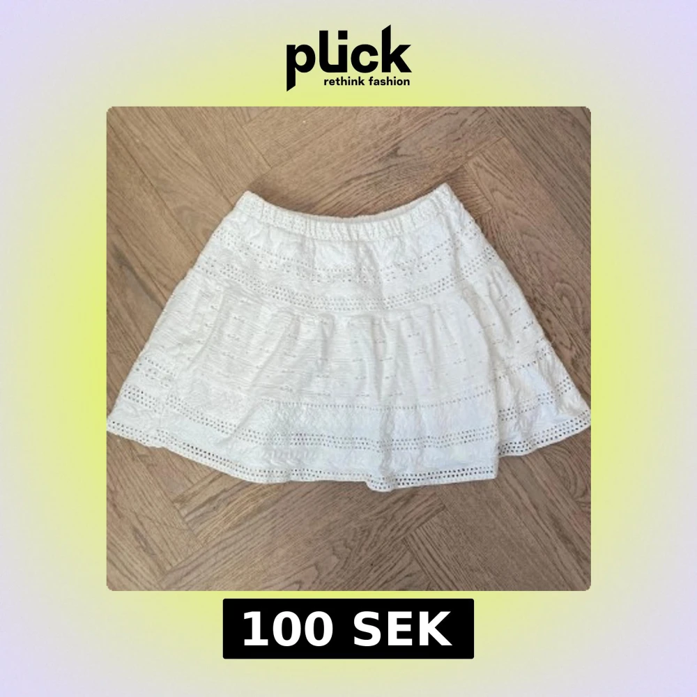 Supersöt vit kortkjol från Zara med fina spetsdetaljer och broderade partier. Kjolen har resår i midjan och är perfekt för en fräsch sommarlook. Lätt och luftig modell som passar till många olika stilar.