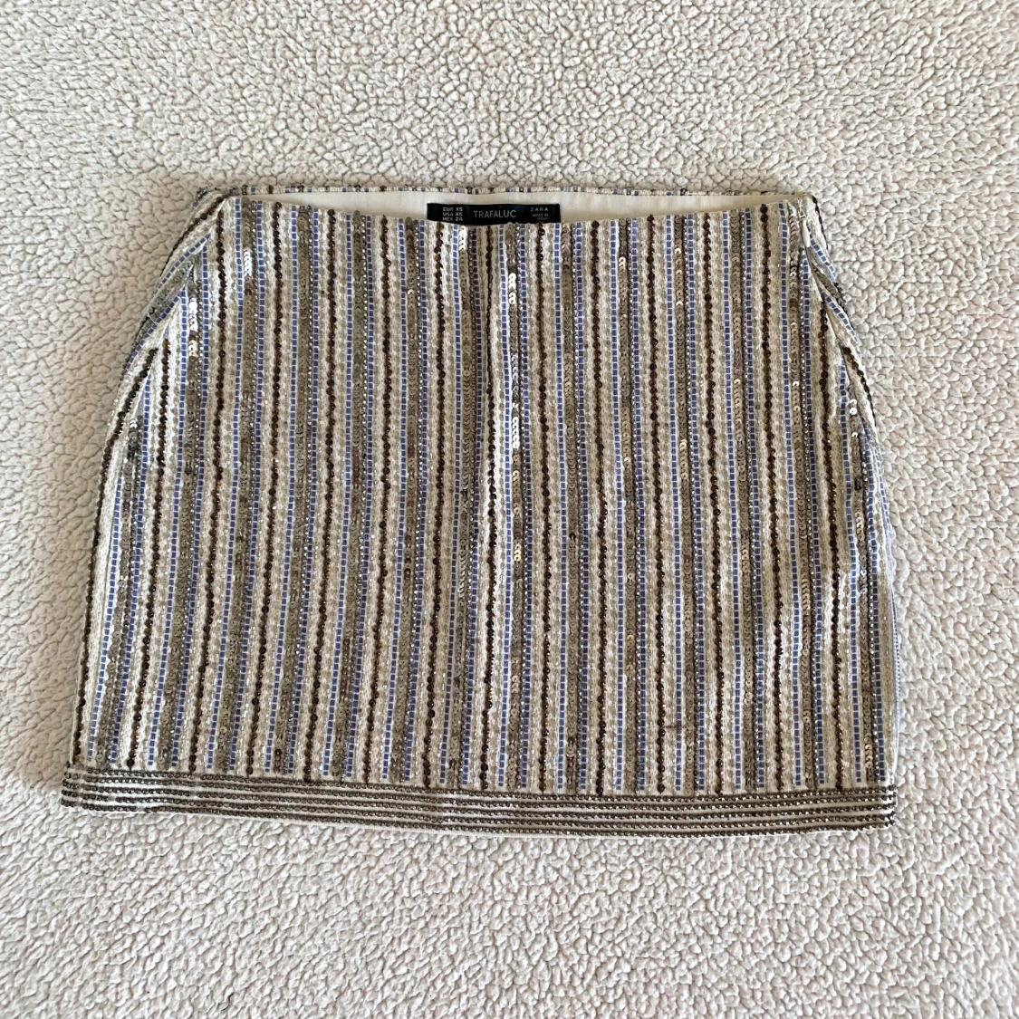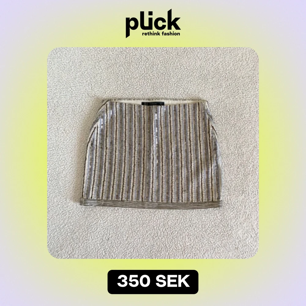 Supersnygg kjol från ZARA med pärlor och paljetter. Endast provad, i nyskick men saknas någon enstaka pärla på sidan av kjolen (syns knappt). Ordinariepris 599kr.