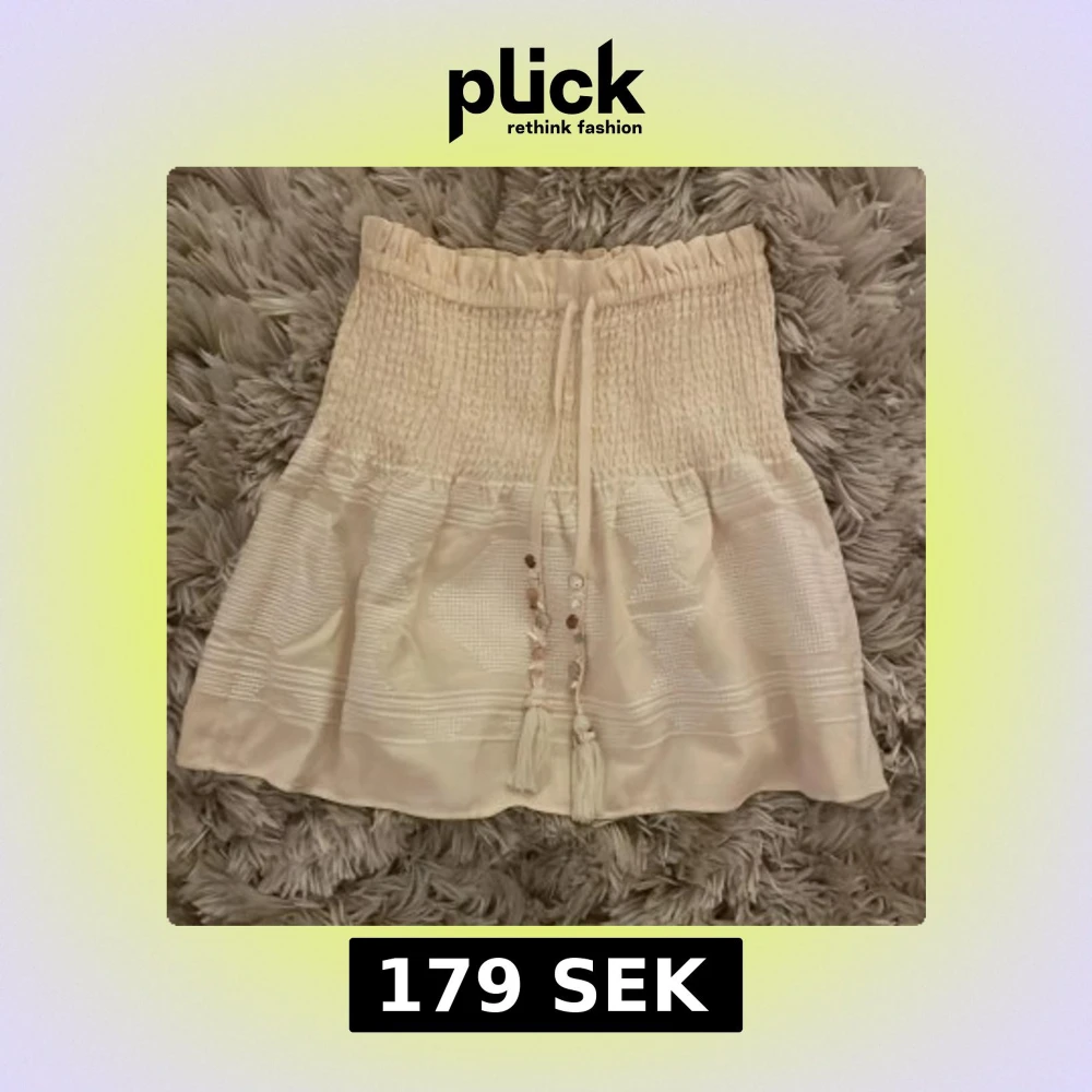 Säljer en söt vit/beige kjol från Zara med smockdetaljer och knytband i midjan. Kjolen har en medellång längd och fina pärlor framtill. Perfekt för en sommaren!💗