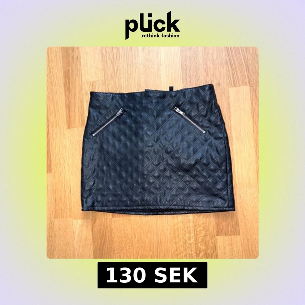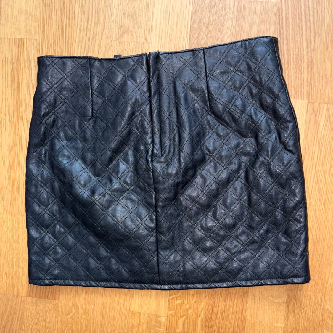 Snygg svart kortkjol i quiltat skinnimitation med två silvriga dragkedjor framtill. Kjolen har en cool rutstruktur och sitter tajt för en edgy look. Perfekt att styla med boots eller en oversized jacka.