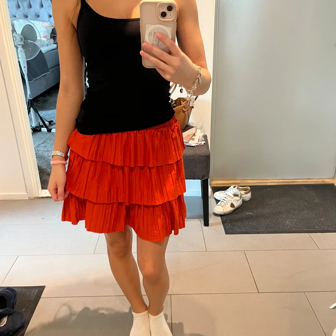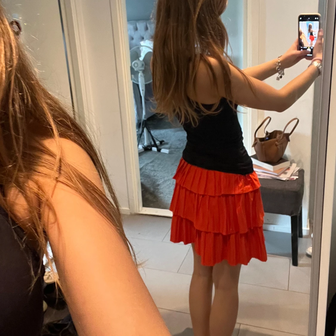 Superfin röd/orange kjol från Zara. Storlek S men passar även som XS. Knappt använd, skick: 10/10. Nypris: 300kr.