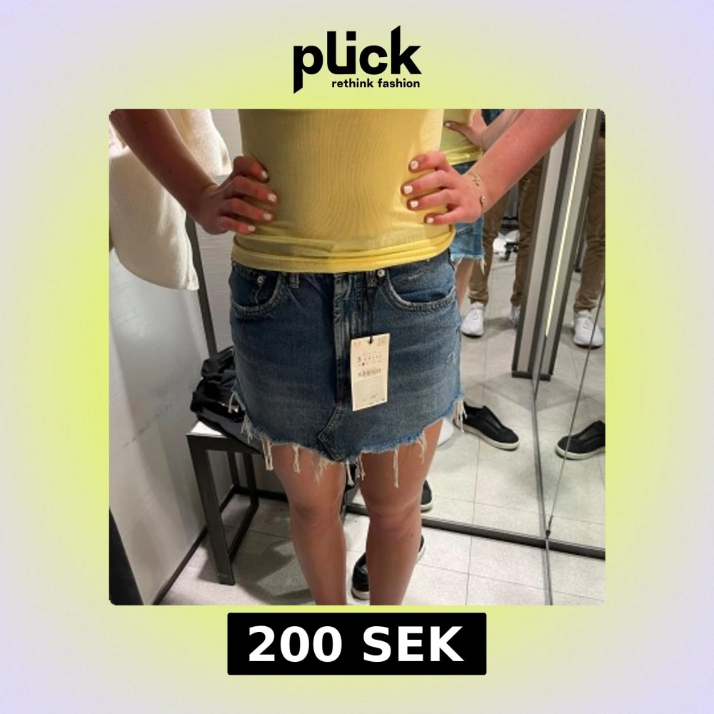 Snygg blå jeanskjol med rå, fransig kant och klassiska fickor både fram och bak. Kjolen har en kort passform och cool slitning för en avslappnad vibe. Perfekt till sneakers eller boots för en trendig look.