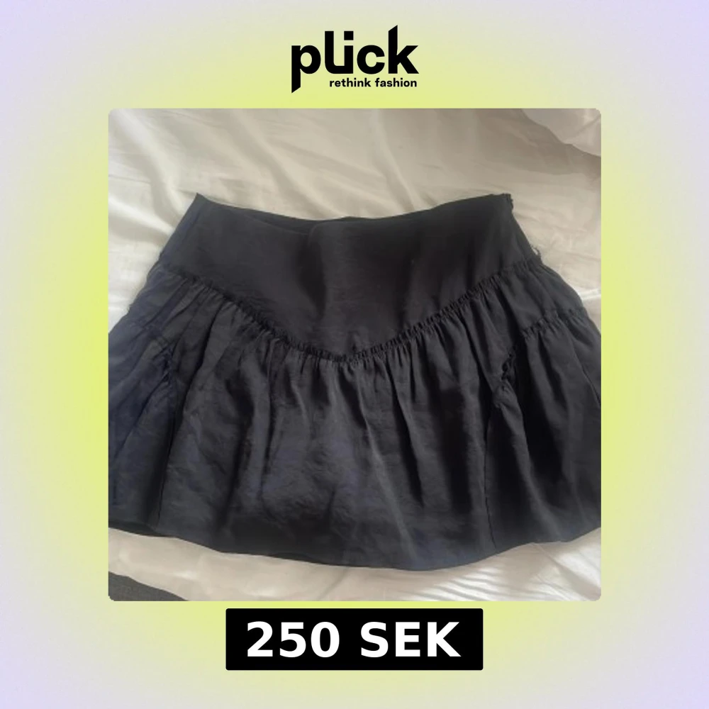 Supersöt svart kortkjol från Zara med volang och bred midja. Kjolen är i ett lätt och flowy material som ger en snygg siluett. Perfekt att styla med en croppad topp eller oversized hoodie för en chill vibe.
