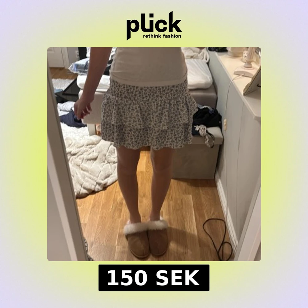 Söt kortkjol med volang i ett blommigt mönster i blått och vitt. Dem är jätte skön och ha inbyggda shorts under