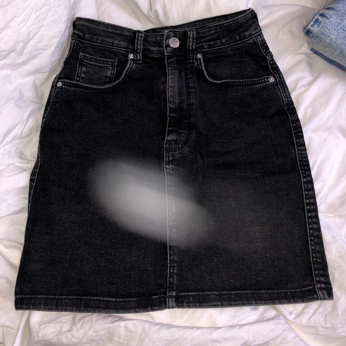 Svart jeanskjol i storlek S från Zara. Perfekt i längden och hur den sitter på.