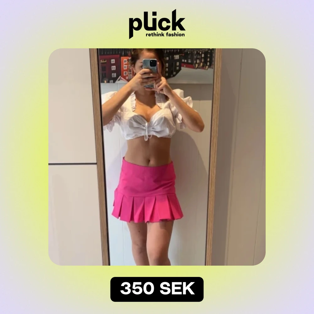Shortskjol med medelhög midja. Nederkant med motveck. Knäppning i sidan med dold dragkedja i sömnen. Denna är i nyskick och är verkligen bekväm eftersom den har inbyggd shorts