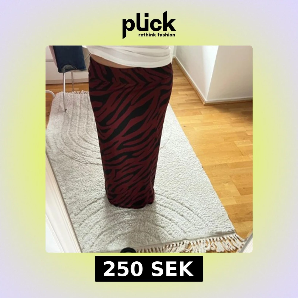 Snygg långkjol med zebramönster i vinrött och svart. Kjolen har en rak passform och resår i midjan för extra komfort. Perfekt för dig som vill sticka ut med ett djurmönster och cool färgkombination.