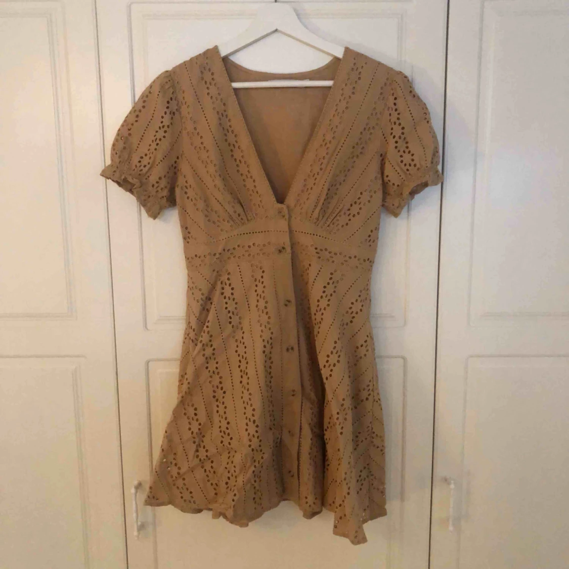 Jättegullig beige klänning köpt från NA-KD som använts vid endast 2 tillfällen. Jag tycker att klänningen är liten för att vara en 38 så räkna med att den är mer som en 36. Frakt ingår i priset.