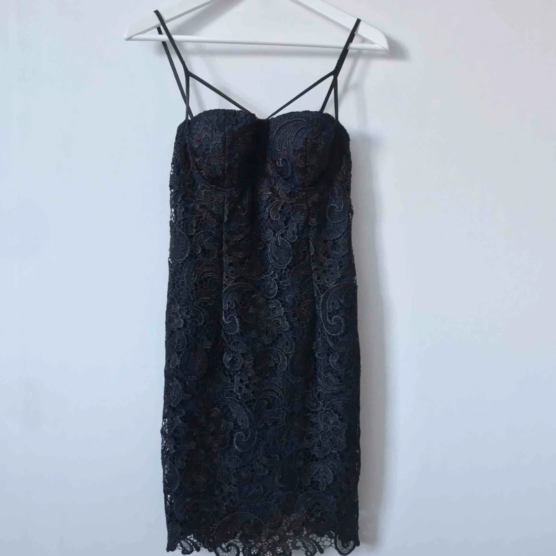 Jätte snygg mörkblå klänning med svart spets🖤 Möts upp i Gävle eller fraktar denna för 54kr