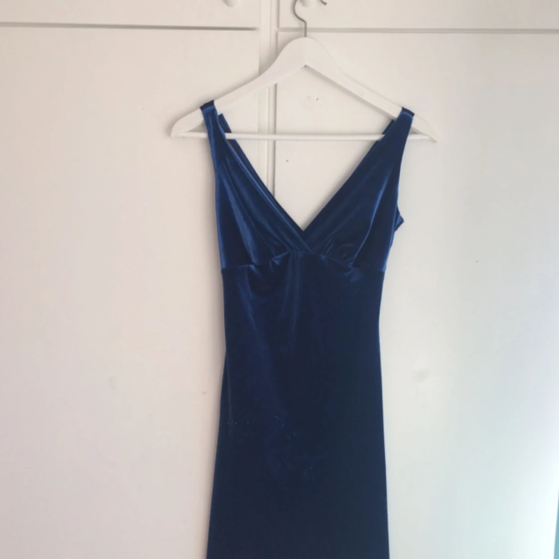 Fin sammetsklänning från Humana secondhand. Skiftar lite lätt i färgen i olika nyanser av mörkblått och mörklila.