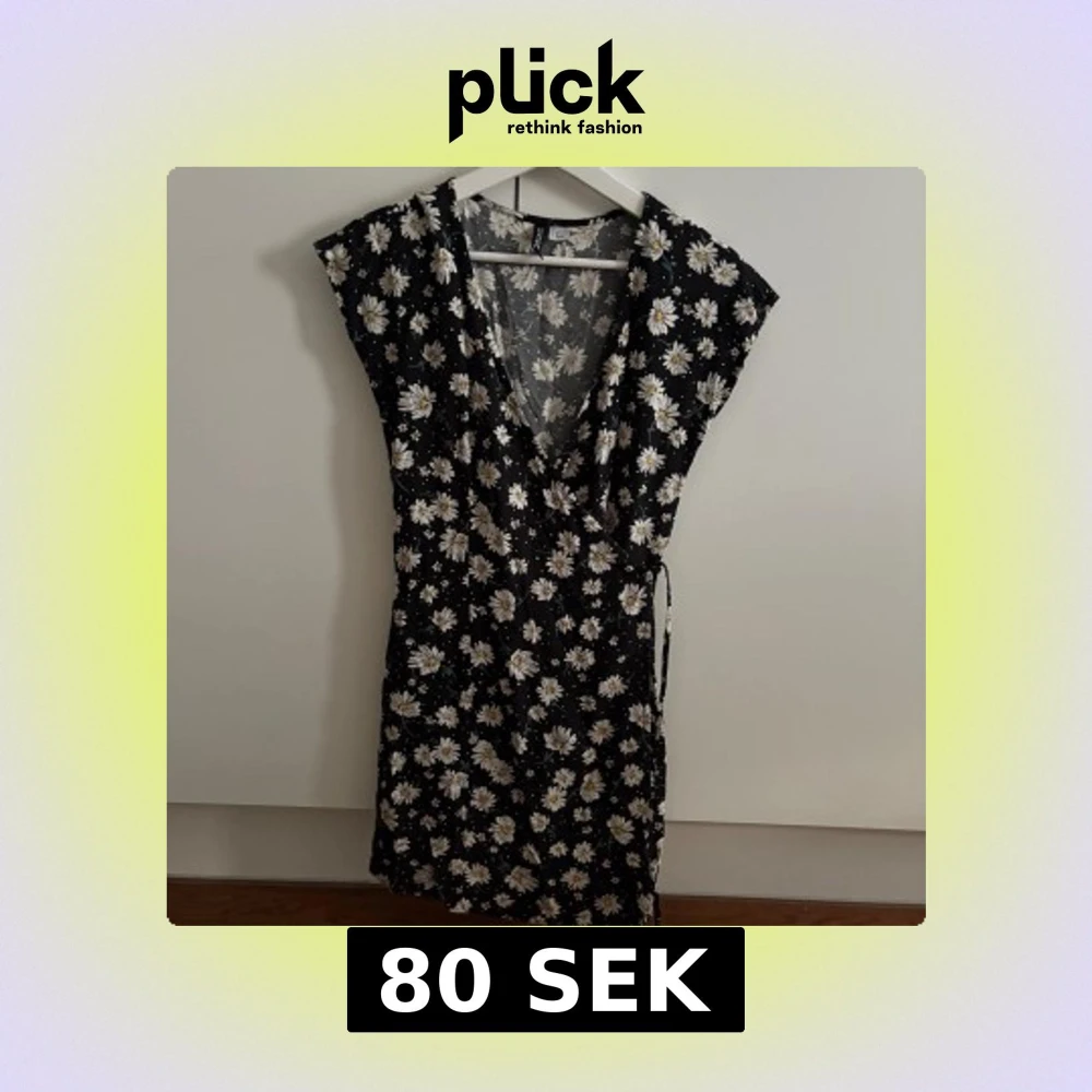 Supersöt svart klänning från Only med vita och gula blommor. Omlottmodell med knyt i midjan och v-ringning. Perfekt för sommarens alla tillfällen🌼