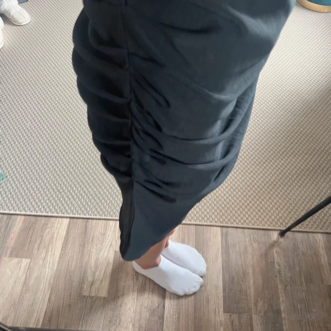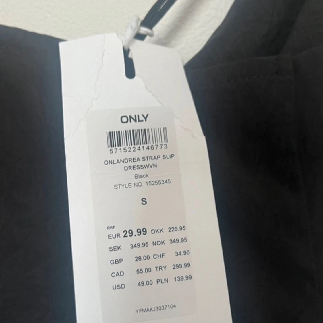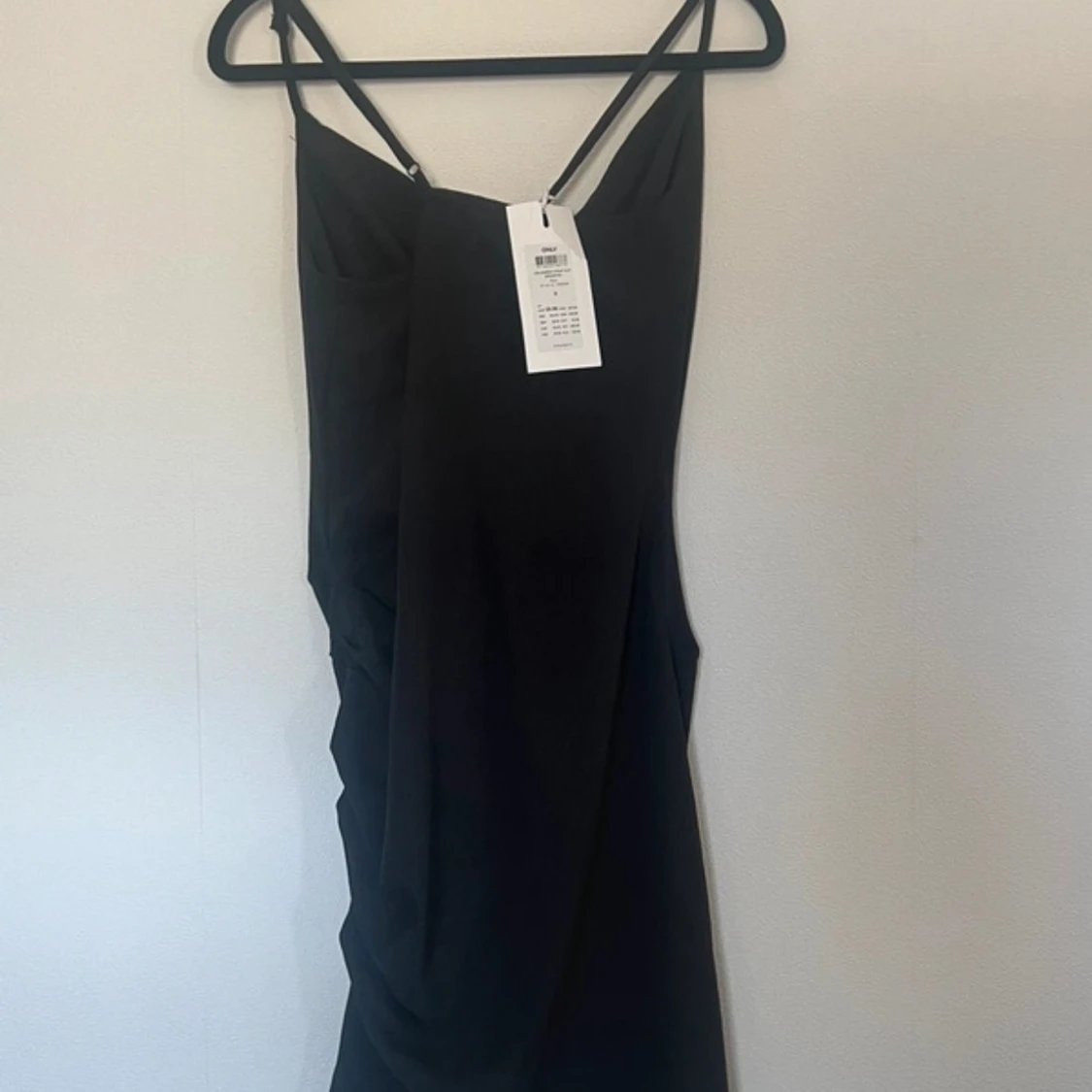 Elegant svart klänning med smala axelband och draperad design. Perfekt för en stilren look. Klänningen har en figurnära passform och är tillverkad i ett mjukt material. Helt ny och oanvänd med prislapp på!