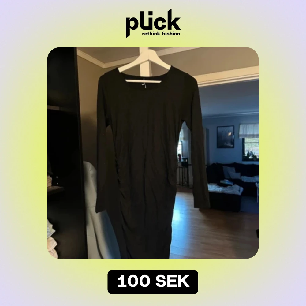 Säljer en stilren svart klänning med lång ärm. Perfekt för höst och vinter, den är både bekväm och elegant. Klänningen har en tight passform som framhäver figuren. Passar bra till både vardag och festliga tillfällen . Scrunch på sidan