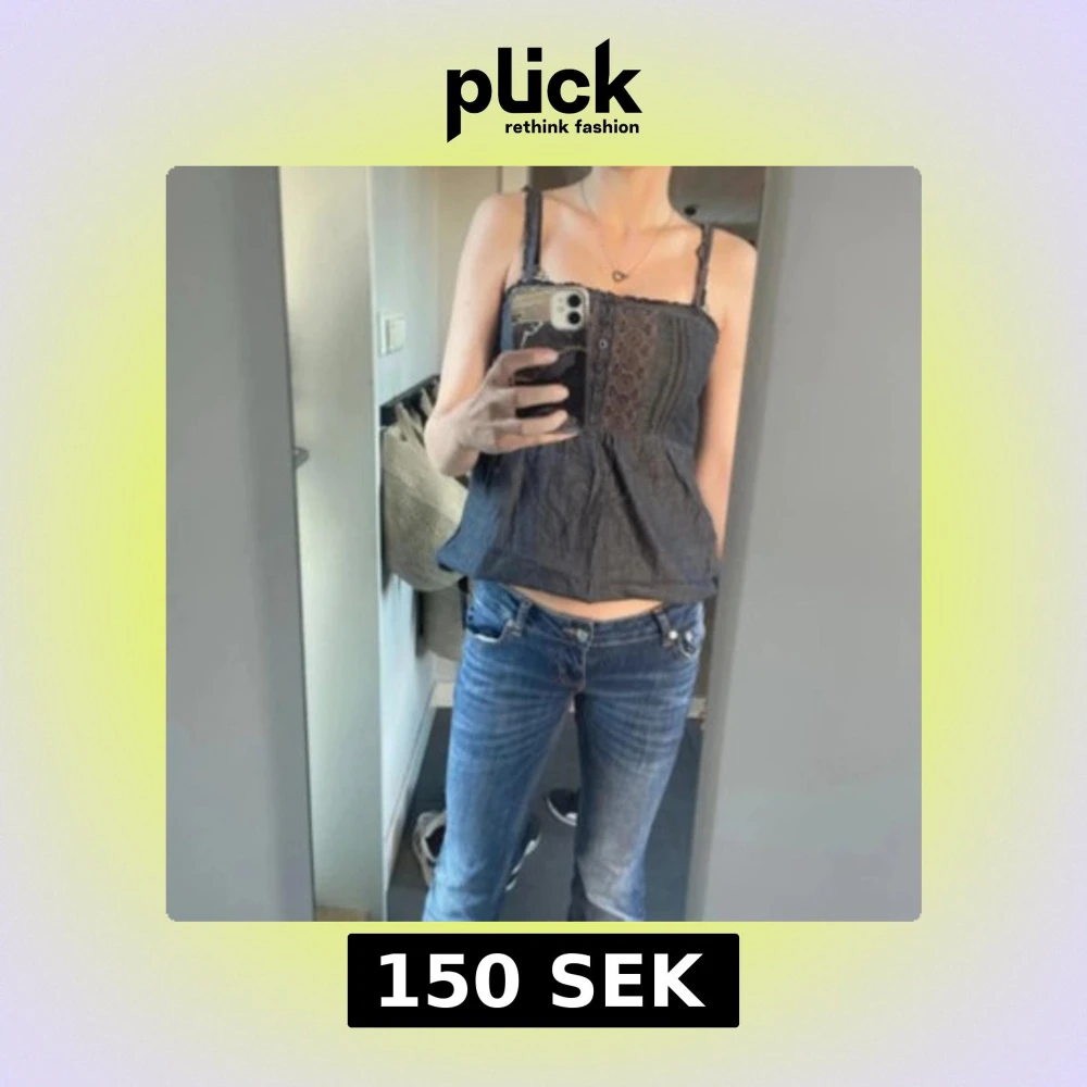 Supersöt svart kortklänning från ONLY med smala axelband och knappar framtill. Överdelen har broderad spets och dekorativa sömmar, vilket ger en cool vintagekänsla. Kjoldelen är lätt utställd och materialet känns mjukt och luftigt. Perfekt för dig som gillar detaljer och en chill stil.