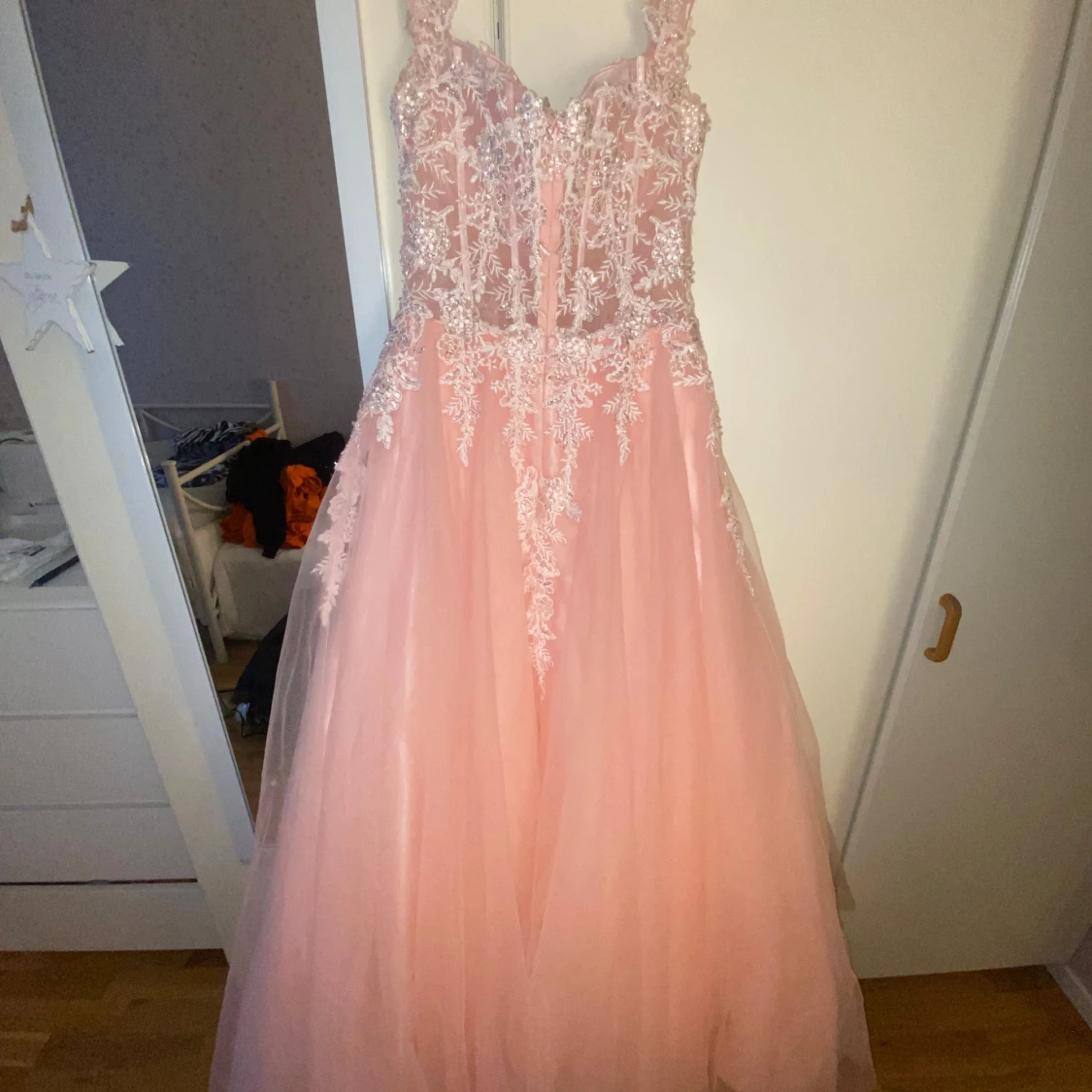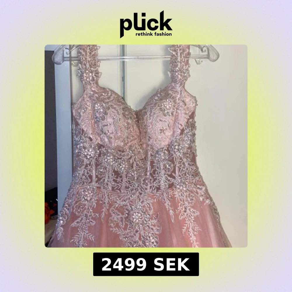 Rosa långklänning med spets och paljetter