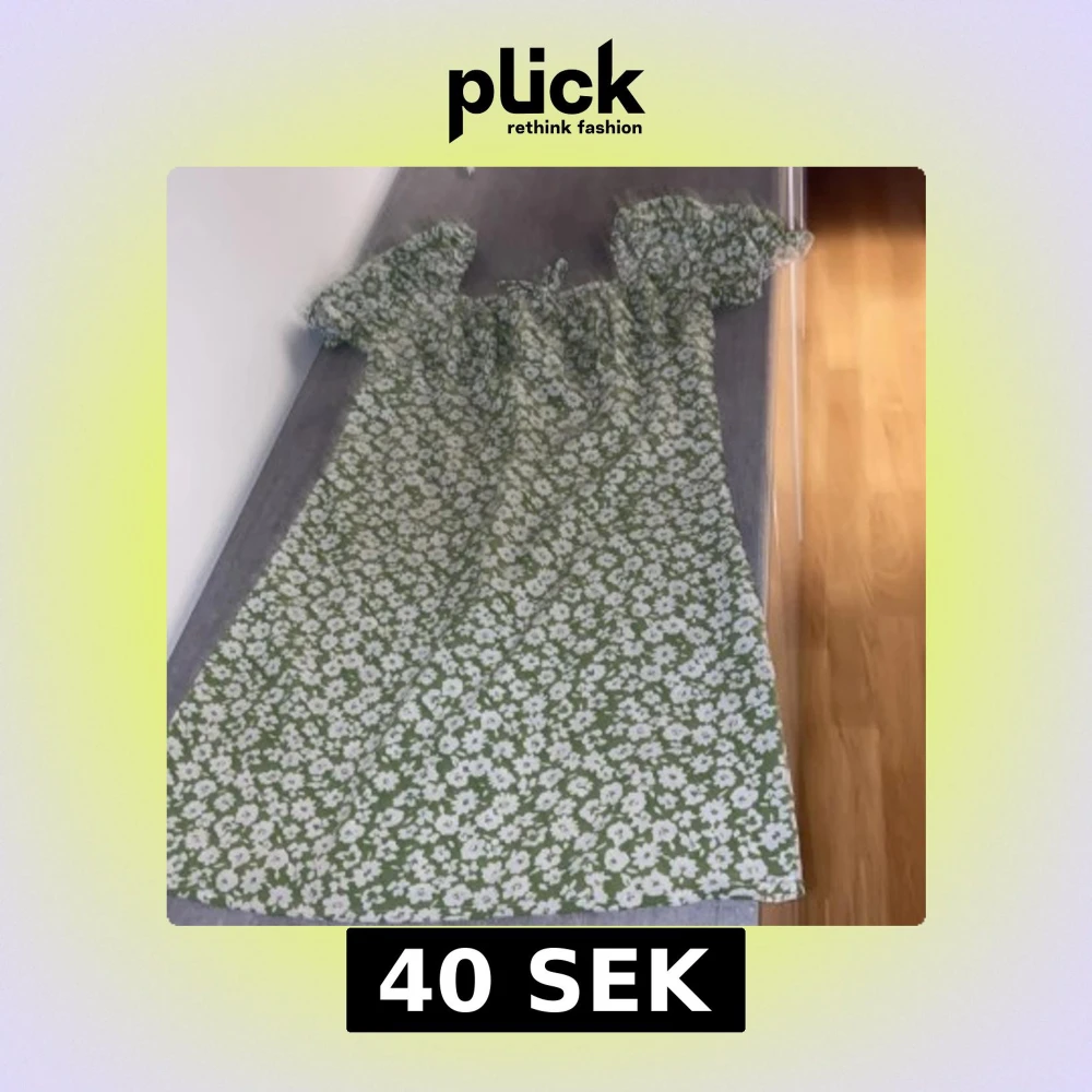 Supersöt grön kortklänning med vitt blommönster och puffiga kortärmar. Klänningen har en söt knytning vid halsen och volangdetaljer vid ärmsluten. Perfekt för sommarens alla tillfällen och ger en fräsch och trendig look.