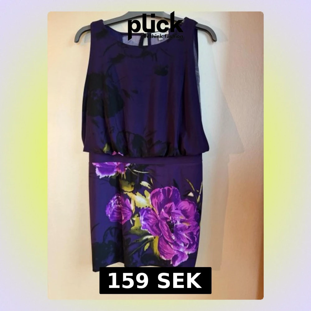 Supersnygg lila kortklänning från Sandra Darren med stora blommor i lila och grönt. Klänningen är draperad fram- och baktill, ärmlös med rund halsringning. Stretchigt och bekvämt material. En riktig året-runt klänning beroende på hur man stylar den!