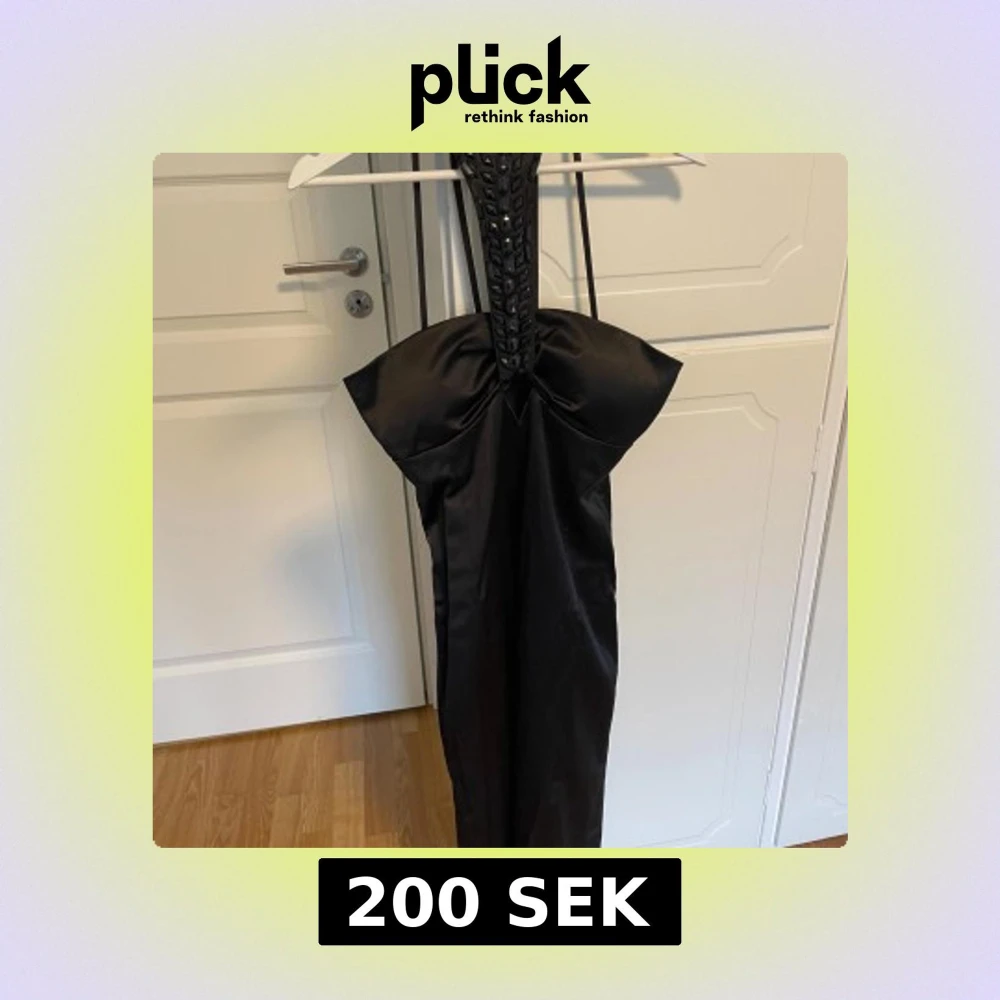 Supersnygg svart långklänning från Fionella med unik halterneck och bred dekorerad axelrem. Klänningen har en stor rosett framtill och är figurnära med dragkedja i ryggen. Perfekt för dig som vill sticka ut med en elegant och cool look.