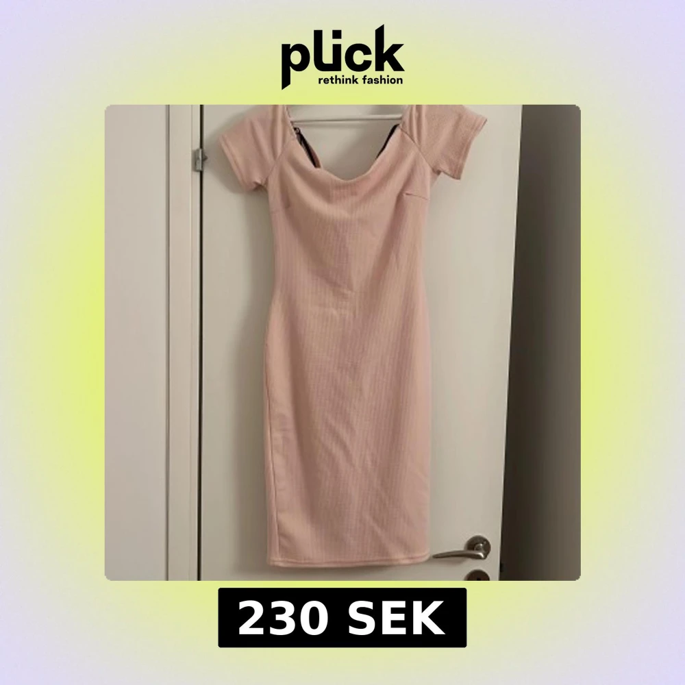 Säljer en ljusrosa kortklänning med ribbad struktur och slim passform. Klänningen har korta ärmar och en snygg twistad detalj med öppen rygg baktill. Perfekt för dig som gillar en feminin och trendig look. Materialet känns mjukt och stretchigt.