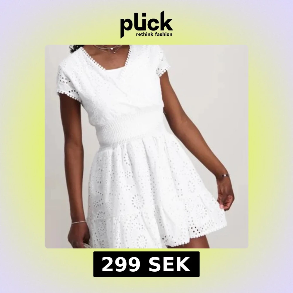 Superfin vit kortklänning från RYVLS med broderade blommor och omlott-v-ringning. Då klänningen nu är för kort för mig som är ungefär 165,den passade när jag var typ 160. Original pris var 599kr men jag säljer för 299kr.pris kan diskuteras