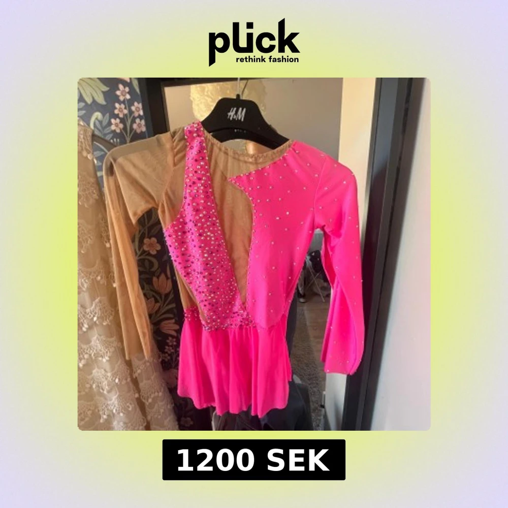 Säljer en supercool kort konståkningsdräkt i starkt rosa med glittriga stenar och nude meshdetaljer. Klänningen har långärmade meshärmar och asymmetrisk design framtill. Perfekt för dig som vill sticka ut på isen!🩷🫶🏻Bara använd två gånger😇🥰