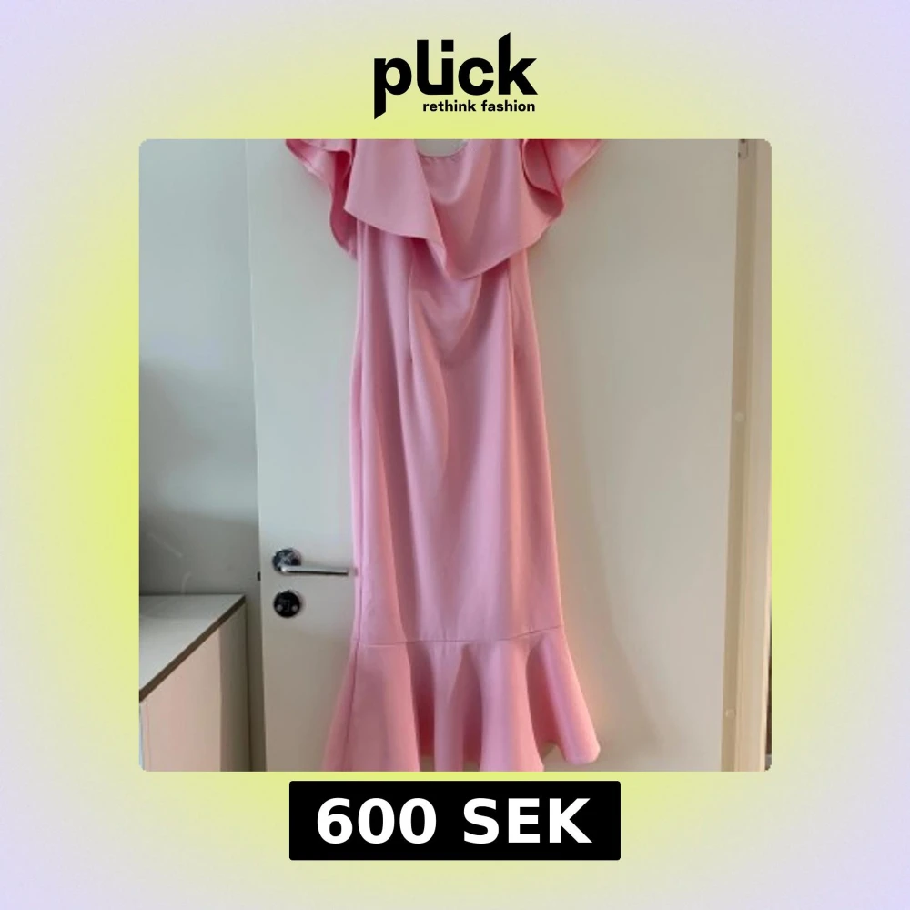 Säljer en elegant rosa klänning från Tussah med volangdetaljer vid axlarna och nederkanten. Klänningen har en vacker, flytande design som ger en feminin touch. Perfekt för speciella tillfällen. Endast använd 1 gång, ser ut som ny. Storlek 14.