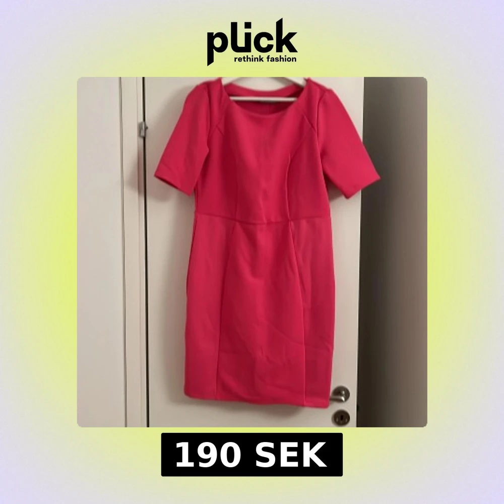 Säljer en snygg kort klänning i stark rosa färg. Klänningen har rund halsringning och korta ärmar, med en figurnära passform som ger en stilren siluett. Perfekt för dig som gillar färg och vill sticka ut lite extra.