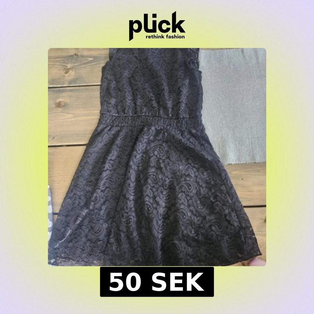 Supersnygg svart kortklänning i spets med markerad midja och lätt utställd kjol. Klänningen har ett vackert spetsmönster över hela plagget och är perfekt för dig som gillar en elegant och trendig look.